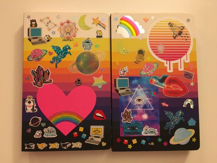 In the above image, the one on the left is my reading notebook, and the one on the right is for gaming. As you can probably tell, I’ve a penchant for stickers. That’s another passion I’ve had my whole life. I even have a monthly subscription to a sticker company called Pipsticks (which I LOVE), and through them, I joined a sticker swap group that has taken over my life in the best possible way. I’ve been exposed to some amazing people and stickers that way. What you see above is a product of some of that.